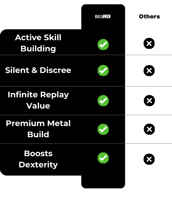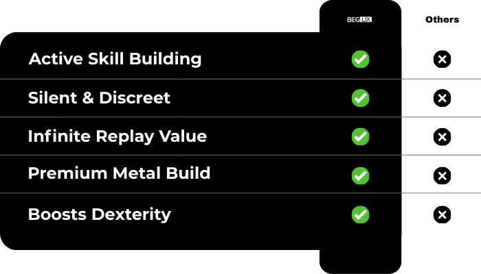 Standard fidget tools like spinners or stress balls offer passive, mindless repetition that quickly loses its appeal. We deliver the opposite: Active Engagement. Unlike plastic fads that end up in a drawer, our gear combines rhythm, skill, and infinite progression. See why we are the upgrade your hands have been waiting for: